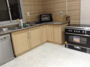 It’s not just getting wired that’s a challenge. The stove was delivered a few days ago but the delivery guys didn’t put the legs on or assemble the hobs. Oliver deciphered the Arabic numbers on what he thought was the receipt and had some very stern words for the guy on the other end telling him he had to send his crew back to finish the job. About 10 minutes later he got a confused call from the man we bought the boys’ mattresses from telling Oliver he didn’t understand what it was we wanted put together. Oops. So we asked the bawab (a doorman/super), who told Oliver that the delivery people don’t do that, the gas company does it when they come hook up the stove. Of course.